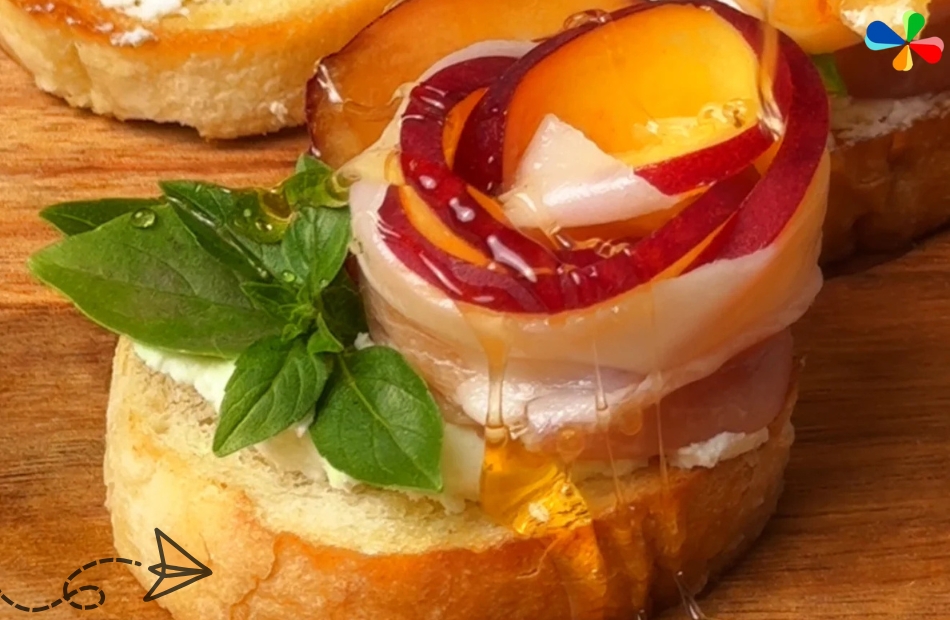 - Preparation: Toast baguette slices, top with ripe peach slices and prosciutto, and drizzle with honey. Garnish with fresh basil or arugula.