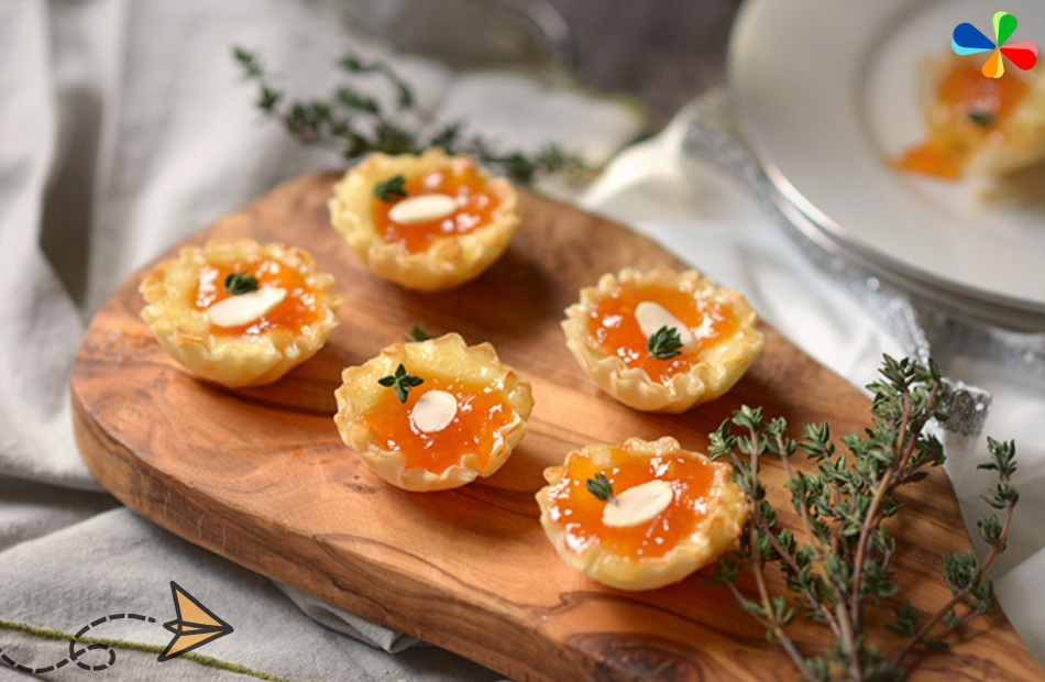 - Preparation: Place a small piece of Brie cheese and apricot preserves in the center of a phyllo pastry square. Wrap and bake until golden.