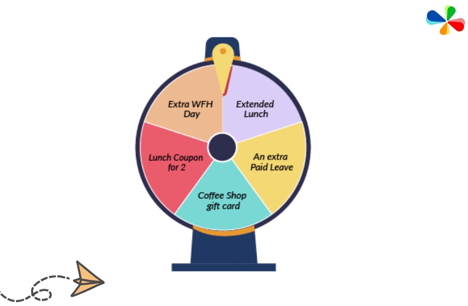 Everyone loves a good spin-the-wheel game! Create a physical or virtual prize wheel with fun rewards like an extra day of PTO, gift cards, or company swag. Throughout the day, allow employees to take turns spinning the wheel to win exciting prizes. This is an excellent way to keep energy high and reward employees for their participation.
